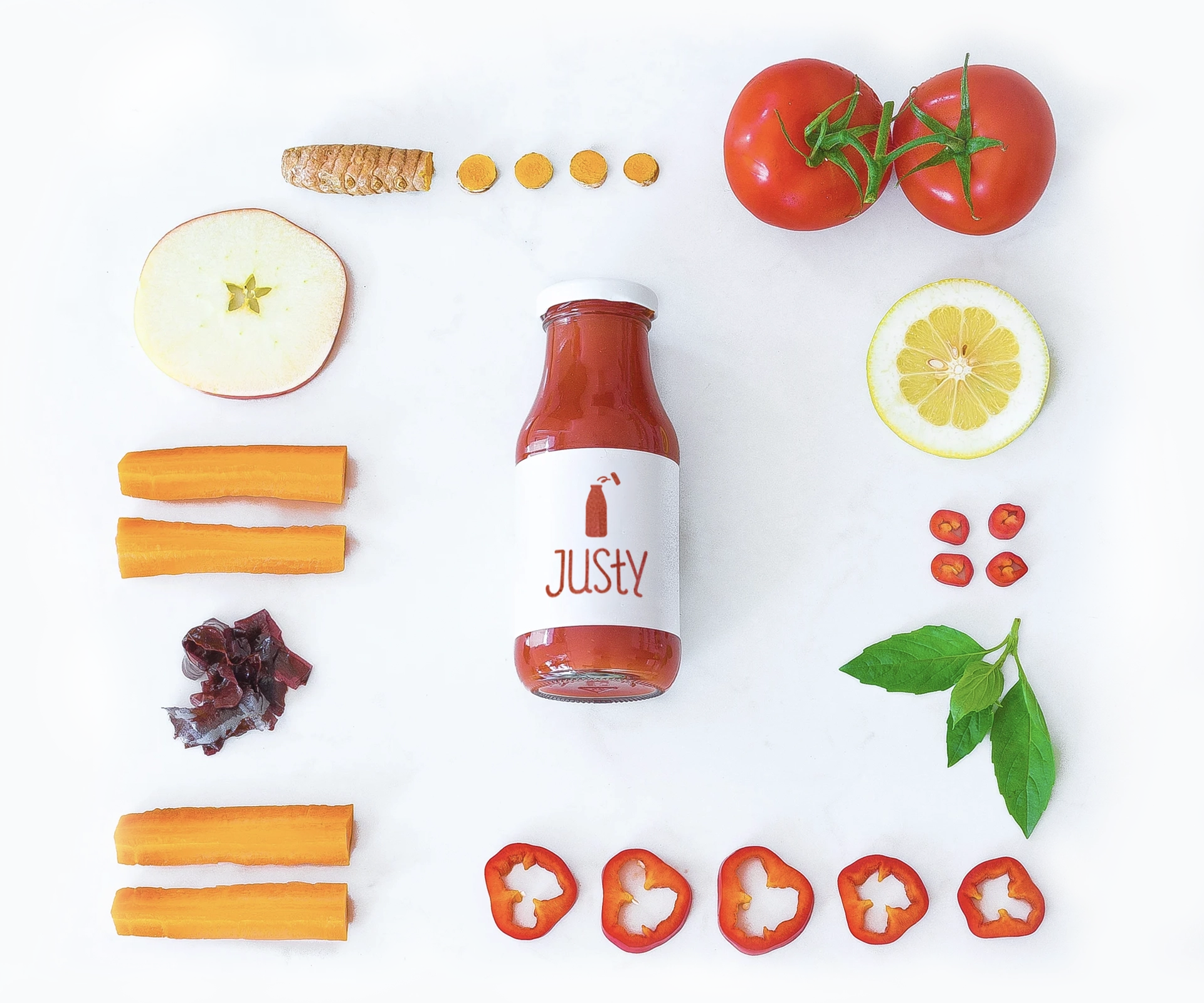 Beim Herstellen unseres biologischen Tomatensafts haben wir lange nach dem perfekten Gleichgewicht zwischen süß, würzig und kräftig gesucht. Wenn Du den Gemüsesaft betrachtest, siehst Du die tiefrote Farbe von Tomate und Paprika. Die Tomaten und Spitzpaprika fallen auch sofort auf, wenn Du die Flasche Tomatensaft öffnest und daran riechst. Vielleicht entdeckst Du auch einen Hauch von Basilikum. Der Geschmack des Safts ist köstlich herzhaft, aufregend und leicht, mit einem sehr eigenen Charakter. Dies ist biologischer Tomatensaft, wie Du ihn noch nie zuvor probiert hast. Der Geschmack erinnert uns an eine einzigartige Gazpacho. Basilikum sorgt für einen würzigen, erfrischenden Akzent und der Apfel und Zitrone bringen etwas Frische. In der Zwischenzeit sorgen Kurkuma und roter Pfeffer für zusätzliche Schärfe. Dulse-Alge aus dem keltischen Meer verleiht dem biologischen Tomatensaft einen köstlichen, leicht salzigen Nachgeschmack. Möchtest du deinen Tag auch mit einem so kraftvollen und vielseitigen Geschmackserlebnis beginnen? Dann solltest du unbedingt unseren Power-Saft bestellen!