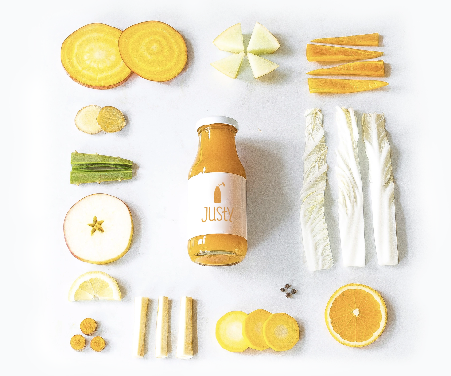 Diese stammen von der gelben Rübe und der Karotte. Der Chinakohl und der gelbe Paprika sorgen für frische, aber auch herzhafte Nuancen. Der Abgang ist warm und kräftig durch die Zugabe von Kurkuma, Ingwer, schwarzem Pfeffer und frischem Aloe vera-Blatt. Das macht diesen Saft zu einem komplexen Gesundheitscocktail, der dich begeistern wird! Unsere Säfte sind eine hervorragende Ergänzung im Rahmen einer abwechslungsreichen, ausgewogenen Ernährung und eines gesunden Lebensstils.“