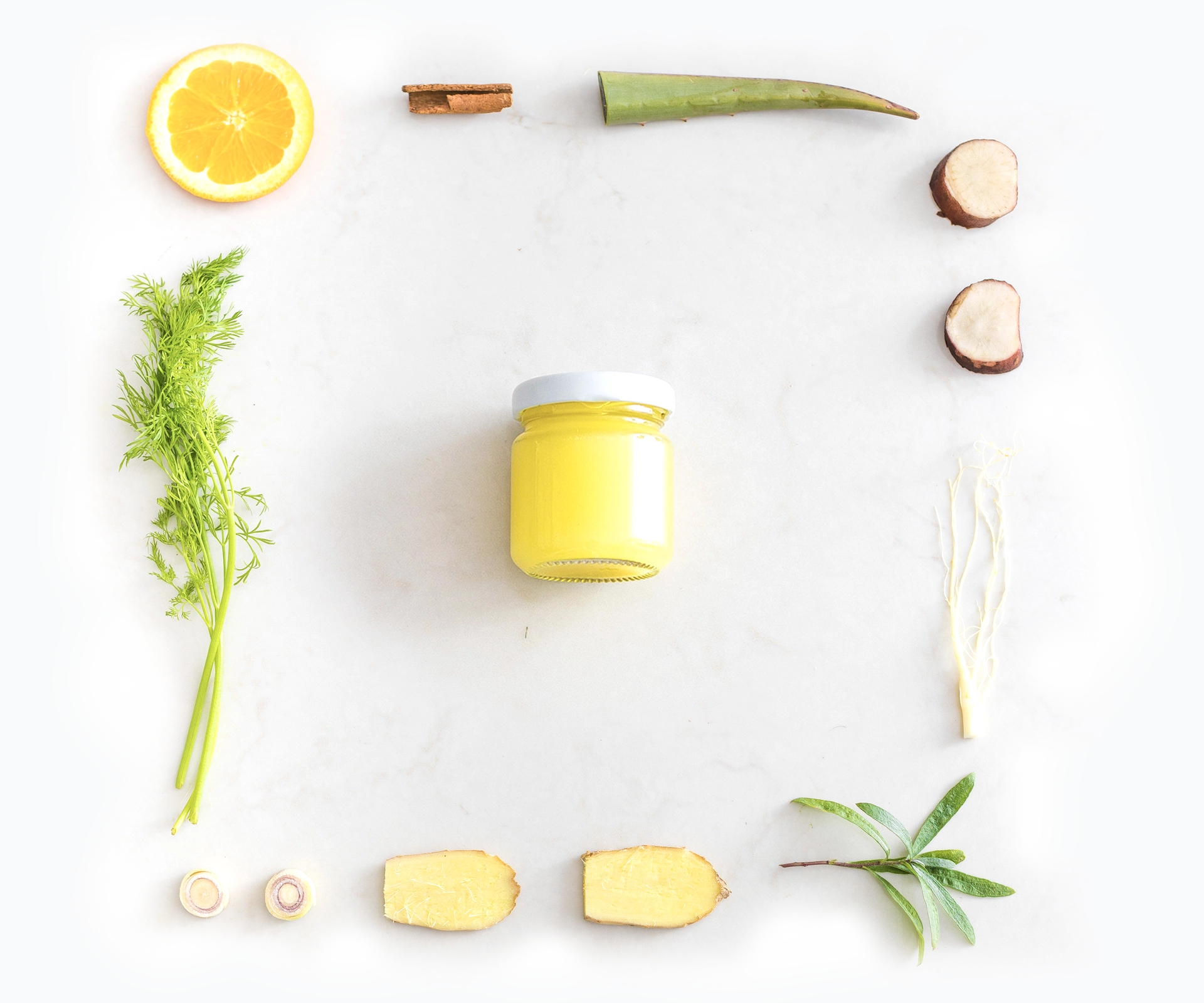 Zutaten Aloe Vera, Apfel, Dill, Estragon, Ingwer, Orange, Weiße Karotte, Zimt, Zitrone, Zitronenmelisse